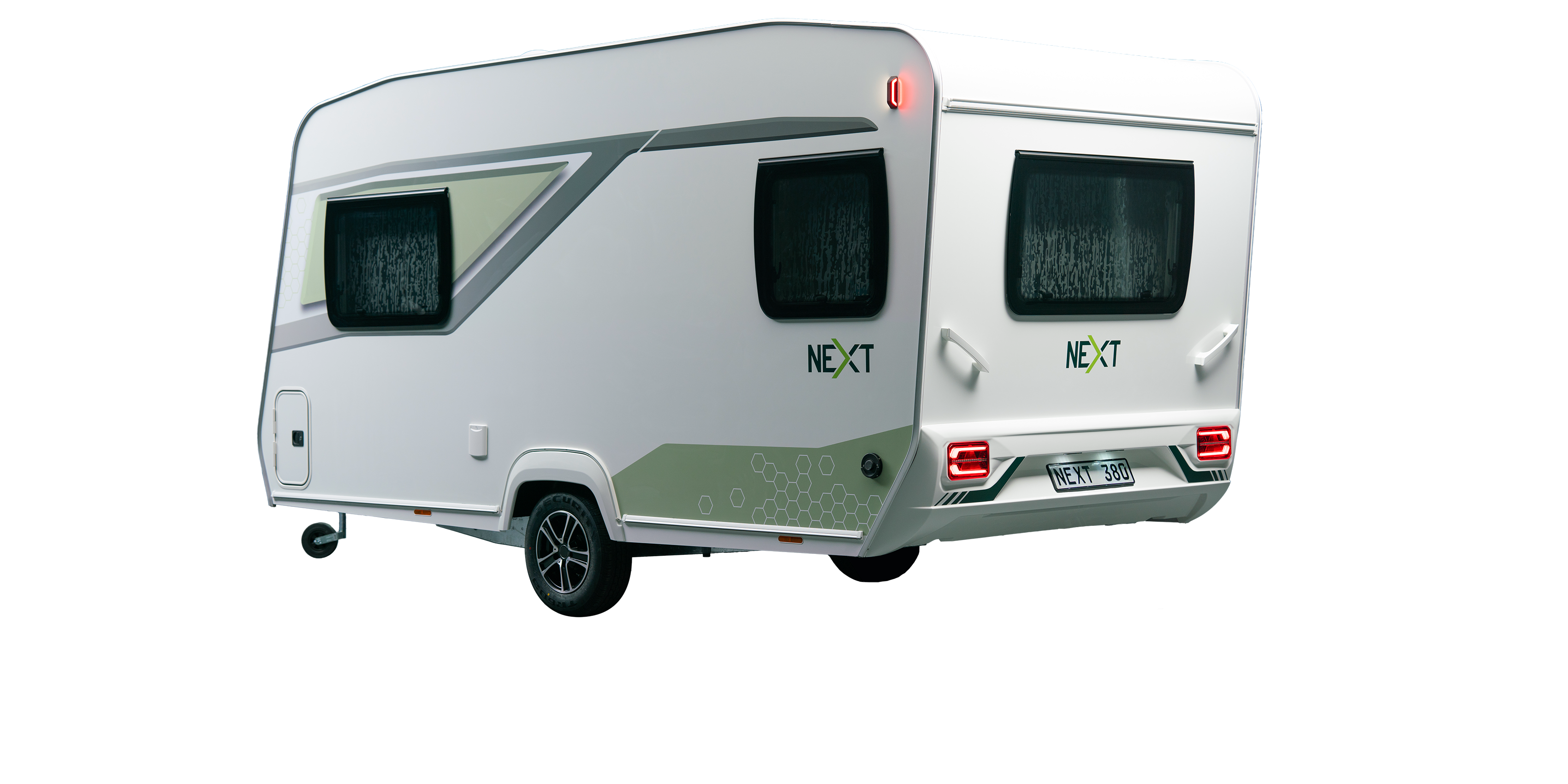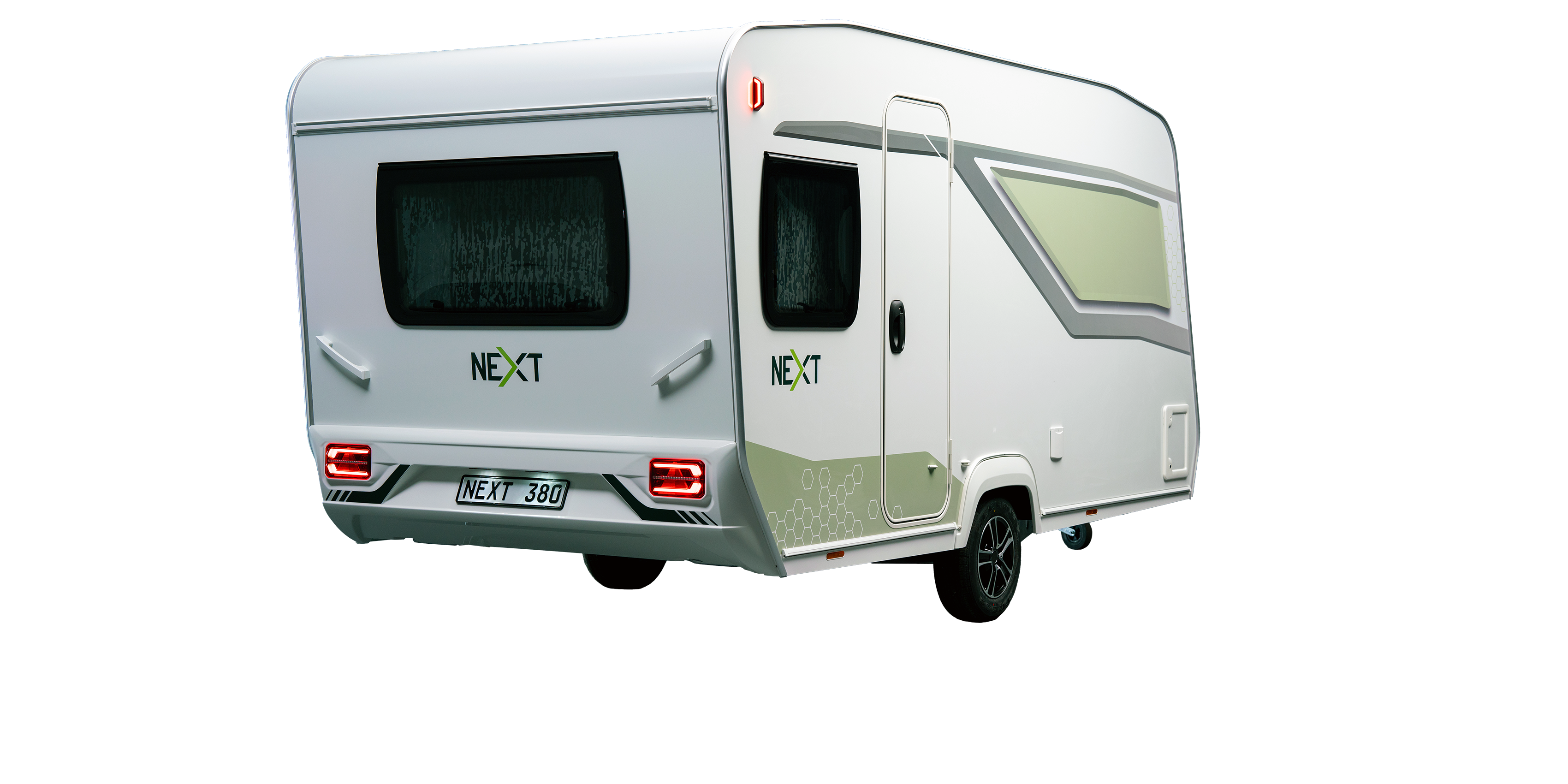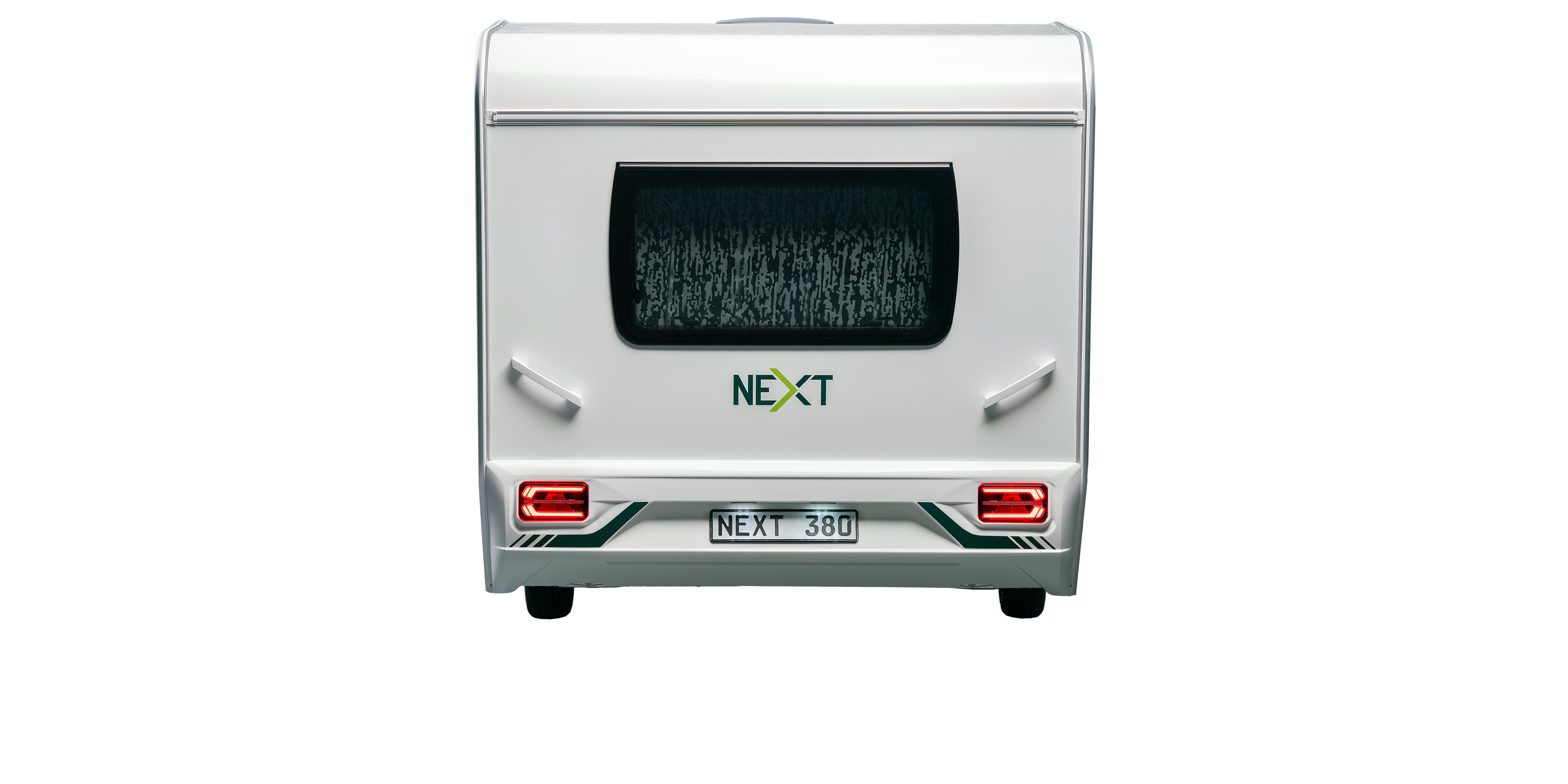 NEXT 380: Kompakti matkailuvaunu seikkailunhaluisille! Sileä peltipinta ja sandwich-rakenne muodostavat kestävän mutta kevyen korirakenteen.